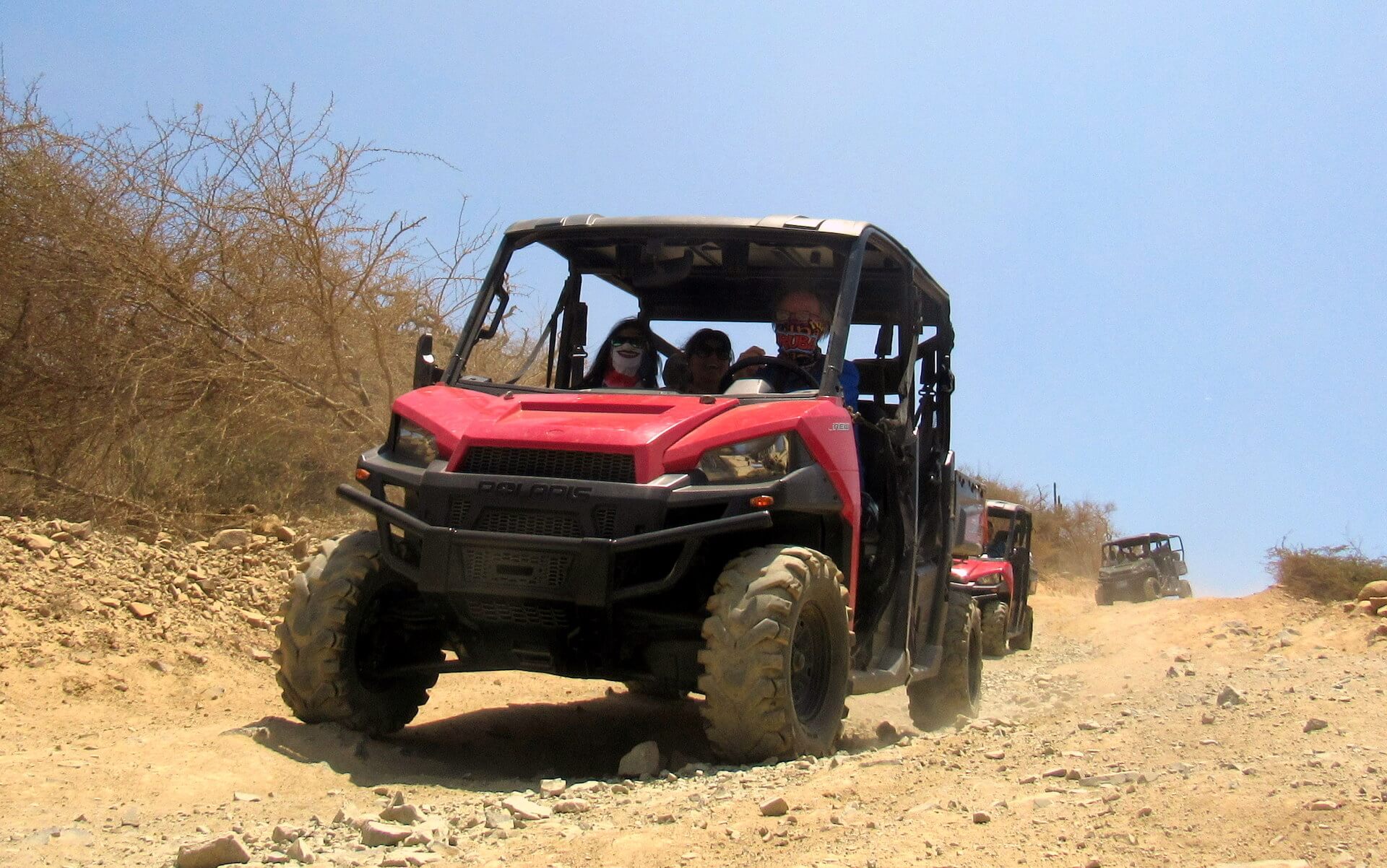 Incluye: Recogida y regreso a Terminal de Cruceros Cascos. Guía bilingüe con experiencia Equipo todoterreno automático Exclusiones: Bebidas y refrigerios Pañuelos y gafas protectoras disponibles para la venta Propinas no incluidas, pero recomendadas.